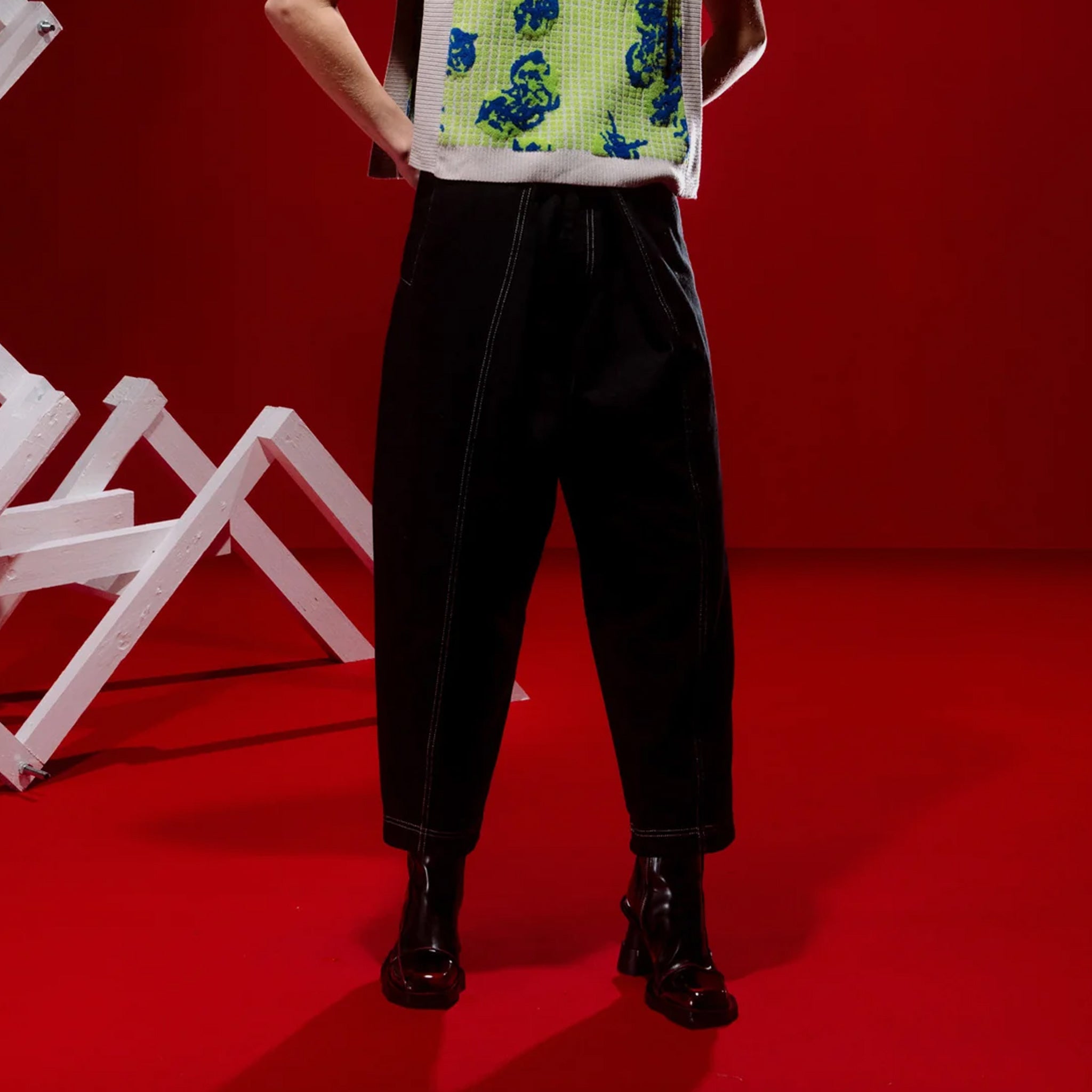 Canned Pant in Caviar from Henrik Vibskov's Autumn Winter 2023 collection, 'Long Fingers To Ma Toes.'