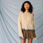 -recycled italian mohair -boxy crewneck sweater -external seaming along center front and center back -hand painted detailing throughout