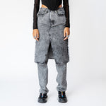 Snow Washed Combo Skirt Jeans