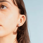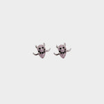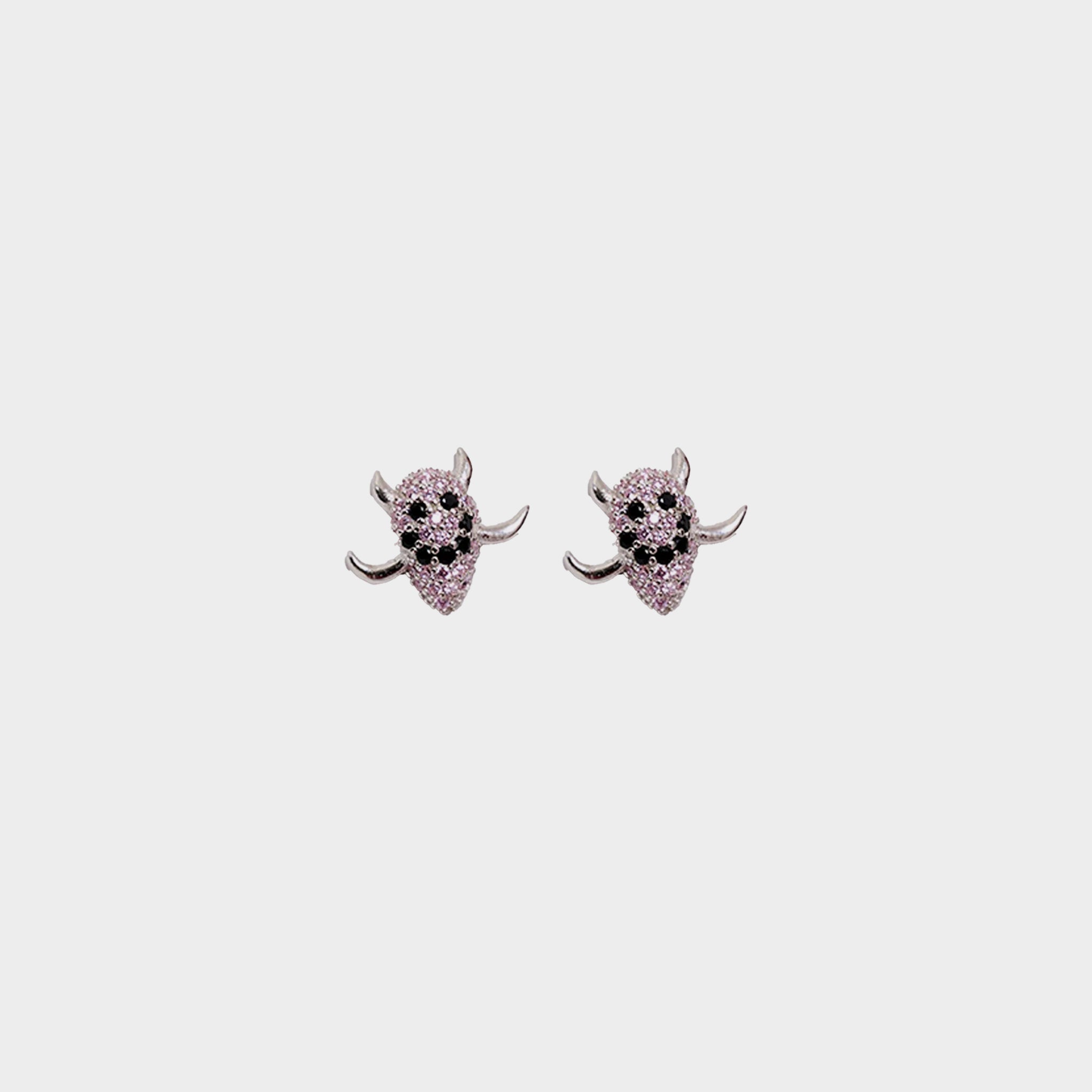 Sterling silver spike monster studs encrusted in light rose-colored rhinestones. Stud back.